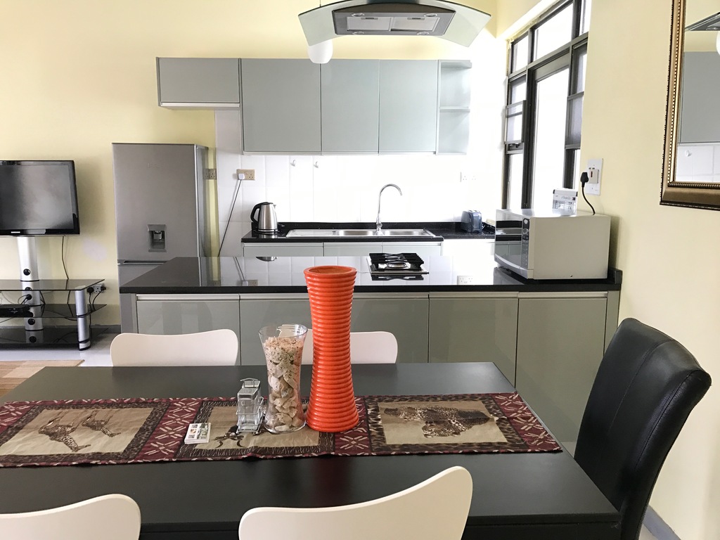 Discover refined comfort in our Master Suite. The master bedroom’s king-size bed, dressed in premium linens, ensures a restful sleep, while the second bedroom with two single beds provides flexible space for family or friends. The open-plan living area features quality furniture, creating a warm and inviting space for memorable moments. Step out onto the outdoor patio to enjoy a serene garden view, offering the perfect backdrop for relaxation and quiet reflection